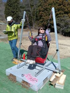 ハーネスに座ってターゲットに投擲!!